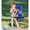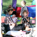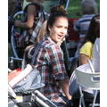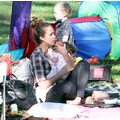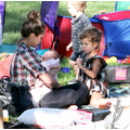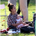 Jessica Alba and Cash Warren take Haven and Honor to a birthday party in the park in Beverly Hills.