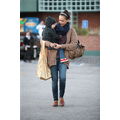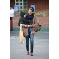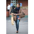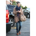 Aww, not only did she flash photogs a brilliant smile, but she gave a homeless man some change on the way to her car. Looks like someone's gotten into the holiday spirit!