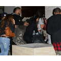 Justin Bieber plays paintball with a ton of girls who surround the teen heartthrob as they go back into his home.