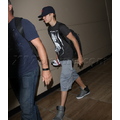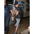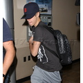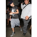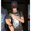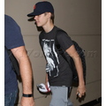 Upon his arrival at LAX, Justin Bieber kept his face hidden from photographers.