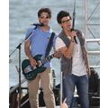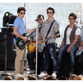 The Jonas brothers jammed onstage as cameras rolled for their JONAS show.