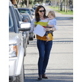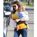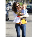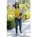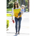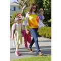 Jennifer Garner with baby Samuel picking up Violet from school.