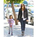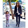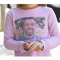 Jen and Ben's little girl wears a shirt with her dad's face on it.