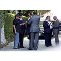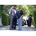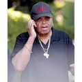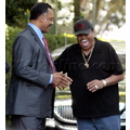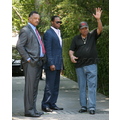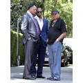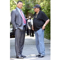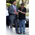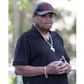 Joe Jackson laughs and chats with Jesse Jackson outside his Encino home just one day after his son's untimely death.