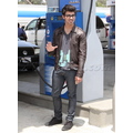 Joe Jonas was kind enough to pose for pictures with fans and for photogs at the gas station in Studio City.