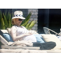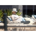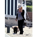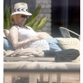 A pregnant January Jones hits the beach.