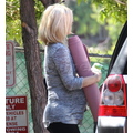 January Jones keeps her yoga workouts going late in her pregnancy.