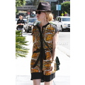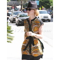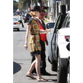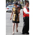 January Jones shopping in Beverly Hills in a silk dress and hat.