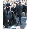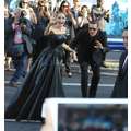 Angelina Jolie went all our in a black Versace dress at the Los Angeles premiere of Maleficent.