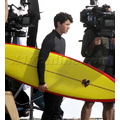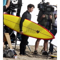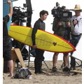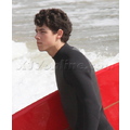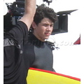 Nick Jonas was snapped shooting scenes for his new music video in Malibu this morning.