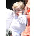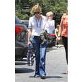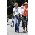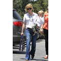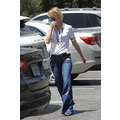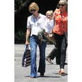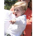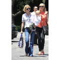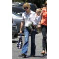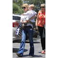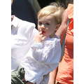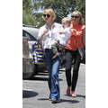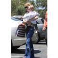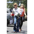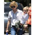 The actress grabs food with her little boy.