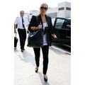Jessica hides her belly behind her purse as she walks through LAX.