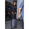 Jaden rolled through LAX yesterday on his scooter luggage, while his brother followed behind on foot.