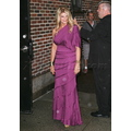 Kirstie Alley dons a sexy purple dress that shows off her slender from at The David Letterman Show in NYC