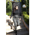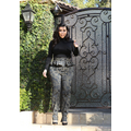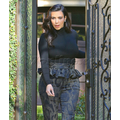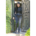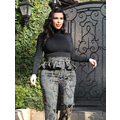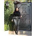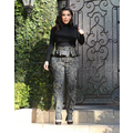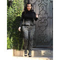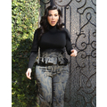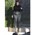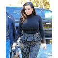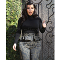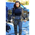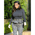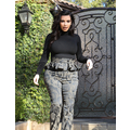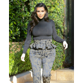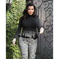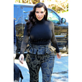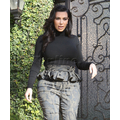 Pregnant Kim Kardashian wears high-waisted peplum pants.