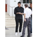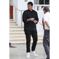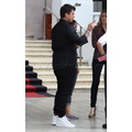 Kim Kardashian and Kourtney wearing ugly pants filming their reality show with brother Robert.