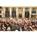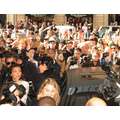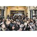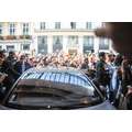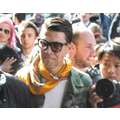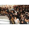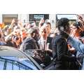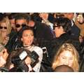 Fans and reporters stampeded the Kim Kardashian and Kanye West as they arrived to the Balmain show in Paris.