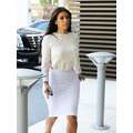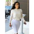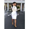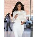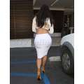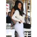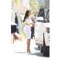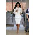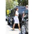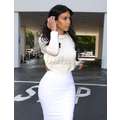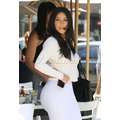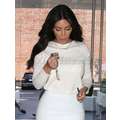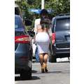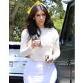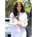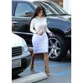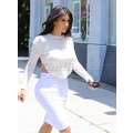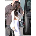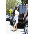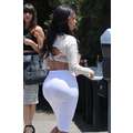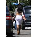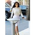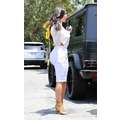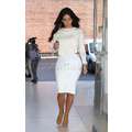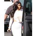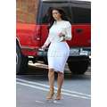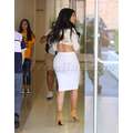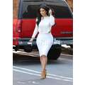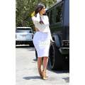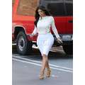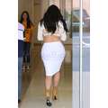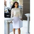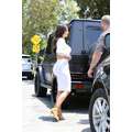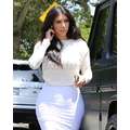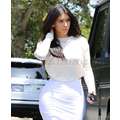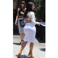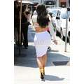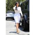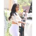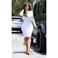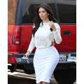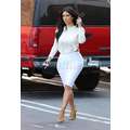 Kim Kardashian gave us a peek at her bra (and her juicy back!) in an all-white outfit on Monday morning.