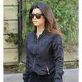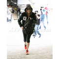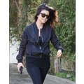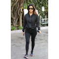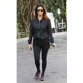 Khloe Kardashian sports a customized Blood Money Entertainment jacket when arriving at the gym on Feb. 19, 2014.
