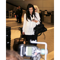 Kim Kardashian wears flowy white shirt at LAX.
