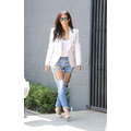 The reality star showed off weight loss in ripped jeans.
