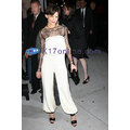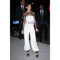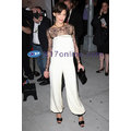Katie Holmes continues to take fashion risks, this time in a silk and lace jumpsuit of her own design.