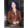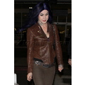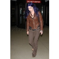 Kat Von D shows off her pretty purple 'do at LAX on Monday night.