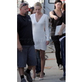 Jealous? The actress chows down on a cheeseburger in between filming...