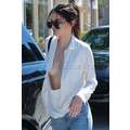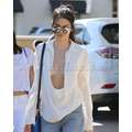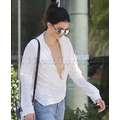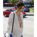 Kendall Jenner ditched her bra and nearly flashed her boobs when she went on a shopping spree on Tuesday afternoon.