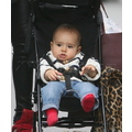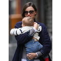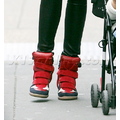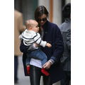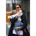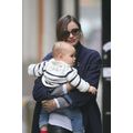 Miranda Kerr steps out in NYC with her darling son Flynn and a pair of $725 Isabel Marant Bekket high-top red sneakers.