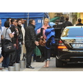 Katherine looks dowdy from the waist up on the set of her new movie!