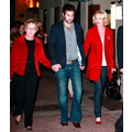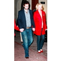 Katherine and her mom step out in matching festive red jackets for the holidays.