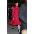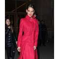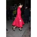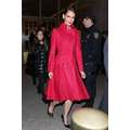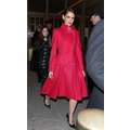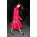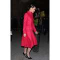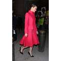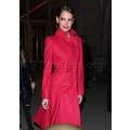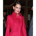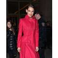 Katie Holmes wears a vintage-inspired coat to the Zac Posen show during New York Fashion Week on Monday night.