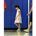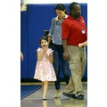 Katie Holmes takes Suri for a tour of the Chelsea Piers basketball courts.