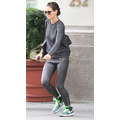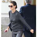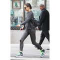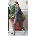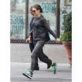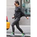 Katie Holmes rocked skinny coated jeans and high top sneakers in N.Y.C. on Monday.