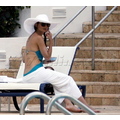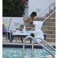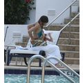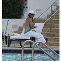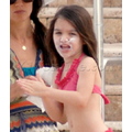 Katie Holmes enjoys the pool with daughter Suri in Miami.
