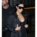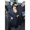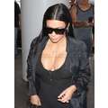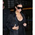 Kim Kardashian's boobies were practically popping out of her top at LAX on Sunday.