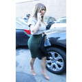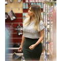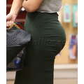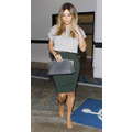 Kim Kardashian showed off her big booty in a skintight green pencil skirt on Wednesday afternoon.