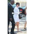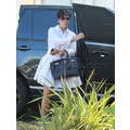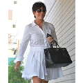 Kris Jenner heads to the studio wearing an all white and carrying a black Birkin bag heading to the studio on Sunday July 14, 2013.