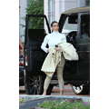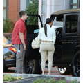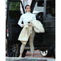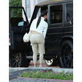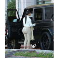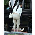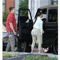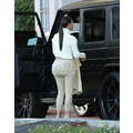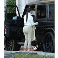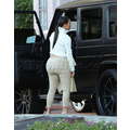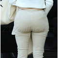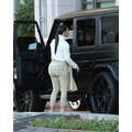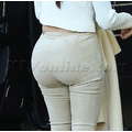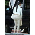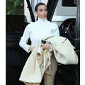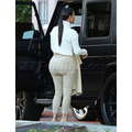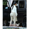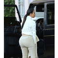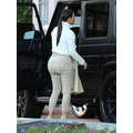 Kim Kardashian showed off her impressive booty in a pair of skintight suede pants on Monday.