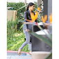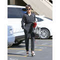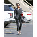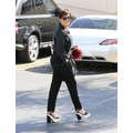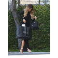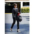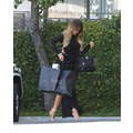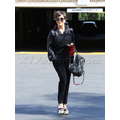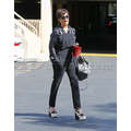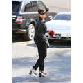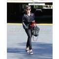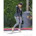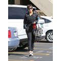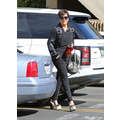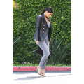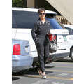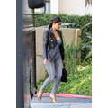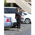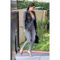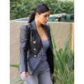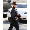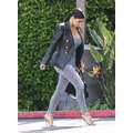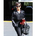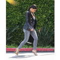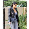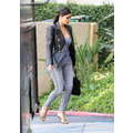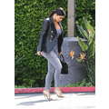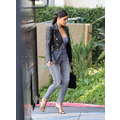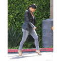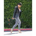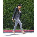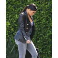 Kim K showed off the fruits of her workout when she wore slim-fitting jeans, her favorite double breasted Nappa leather jacket by Balmain and heels while heading to her office in Los Angeles on Wednesday.