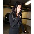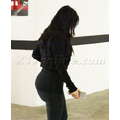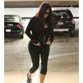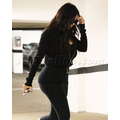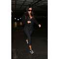 Kim Kardashian showed off her famous fanny in a pair of black spandex on Monday.