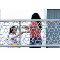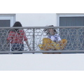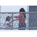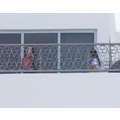 Kourtney Kardashian flashed onlookers when she was twirled around by Khloe, blowing up her short skirt and showing off her derriere in the process while at her hotel in Miami.