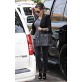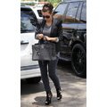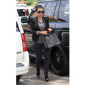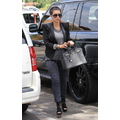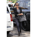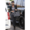 Kim Kardashian trips and almost falls on her high heels at a recording studio in LA.