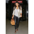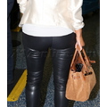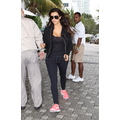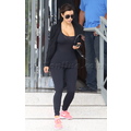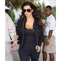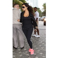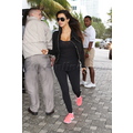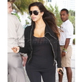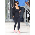 On Tuesday morning Kim and her sister Kourtney hit the gym in Miami, and just a few hours later we spotted the reality TV superstar landing at LAX in a pair of sexy leather pants.