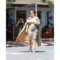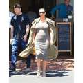 Pregnant reality star Kim Kardashian showed off her curves when she turned up at Fred Segel in West Hollywood on Thursday.