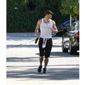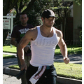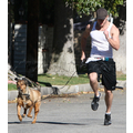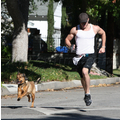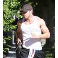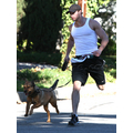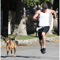 Smokin' hot Kellan Lutz takes his adorable dog for a run on Friday morning.