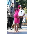 Kenya Moore smiled and slipped into a skintight pink dress on Tuesday afternoon while taping an appearace with Extra.