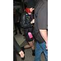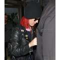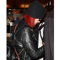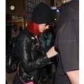 Katy Perry tries to hide her new red hair when she arrives at LAX on