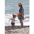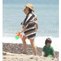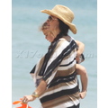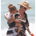 Real Housewives of Beverly Hills star Kyle Richards (and aunt to Paris and Nicky Hilton), carries daughter Portia on the beach in Malibu.